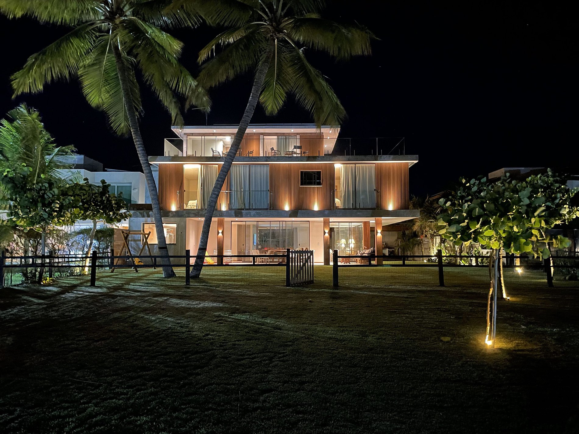 Na beira de uma das mais belas praias do litoral norte da Bahia, em um loteamento fechado com acesso controlado e total segurança, casa confortável de bom gosto, requinte e muito aconchegante com 6 suítes, varandas, piscina com deck de madeira adega e bar com freezer e sanitário, cozinha totalmente equipada com 2 geladeiras, fogão, micro-ondas e máquina de gelo.
