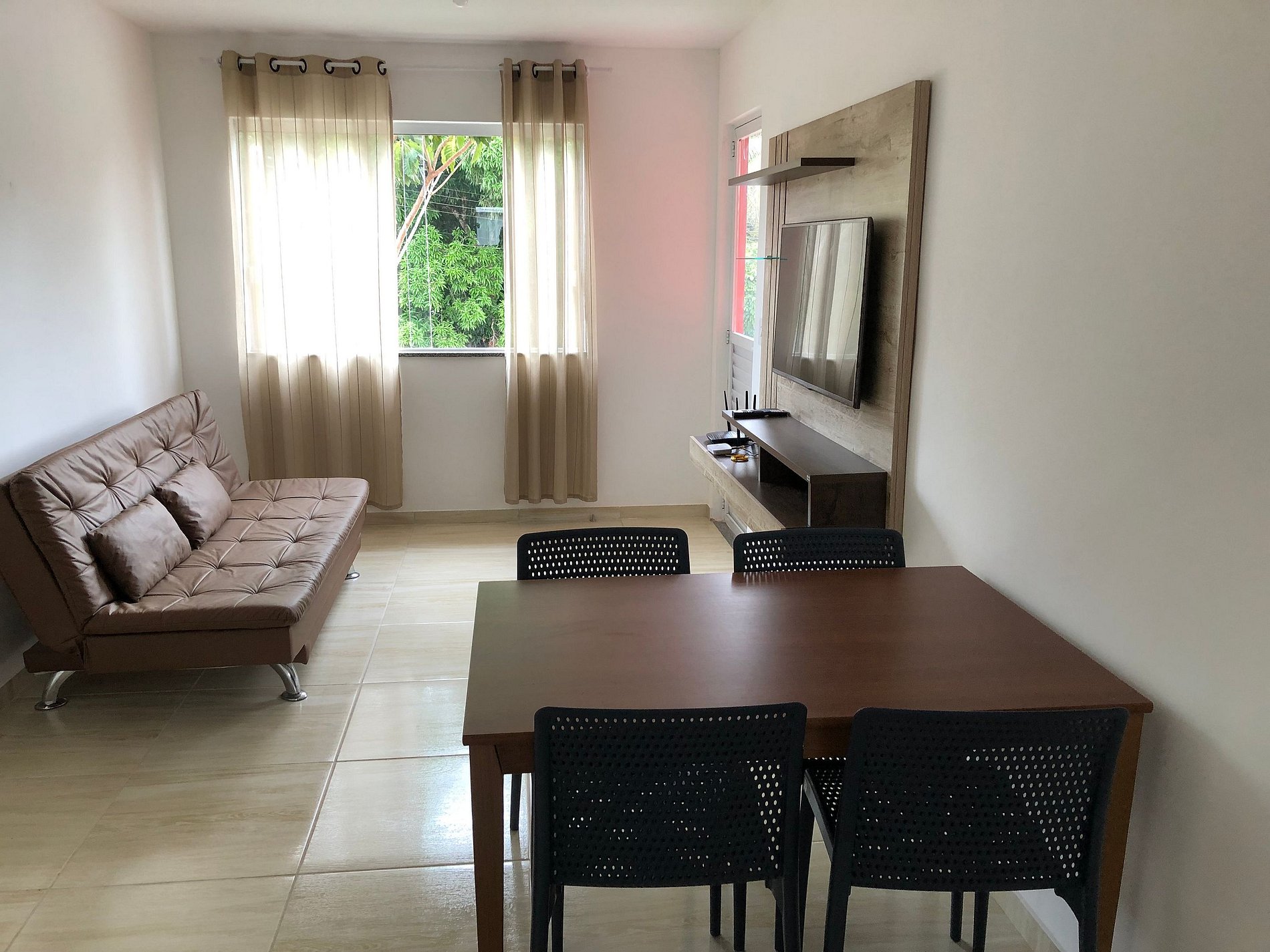 Todos os móveis e eletrodomésticos são novos, o apartamento é bastante aconchegante e agradável.