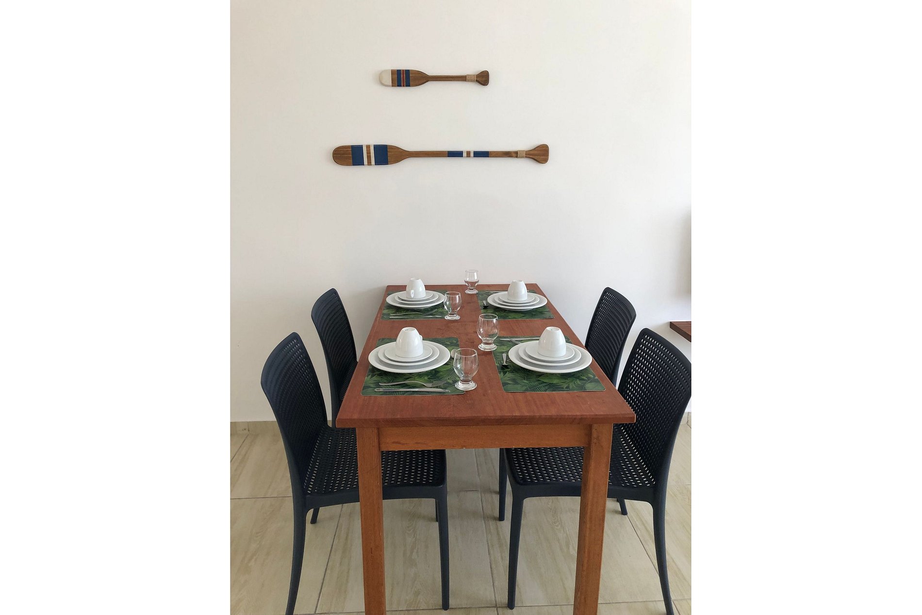 O imóvel está mobiliado com total infraestrutura, quartos com ar-condicionado, armários, e enxoval completo com lençóis, travesseiros e toalhas.