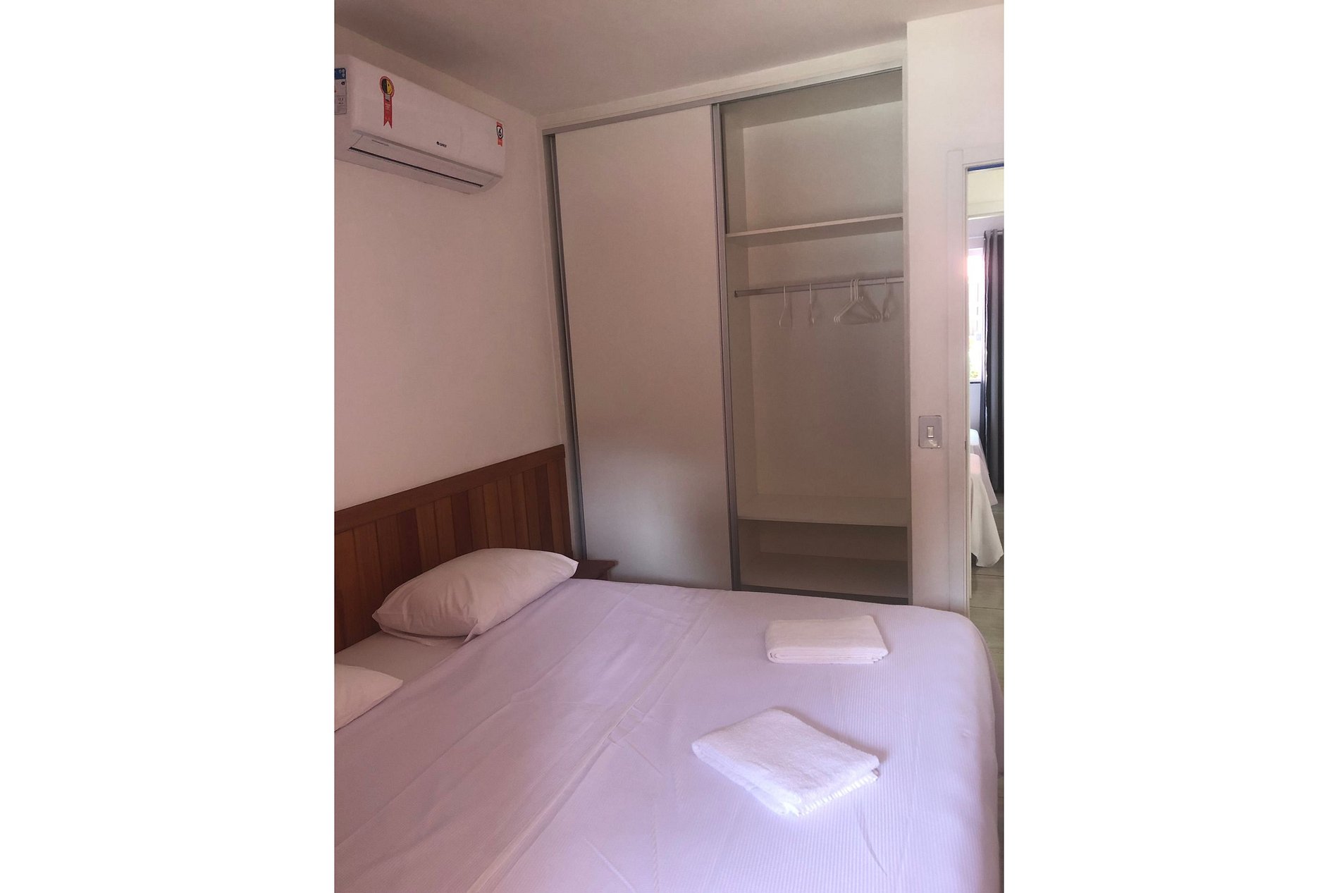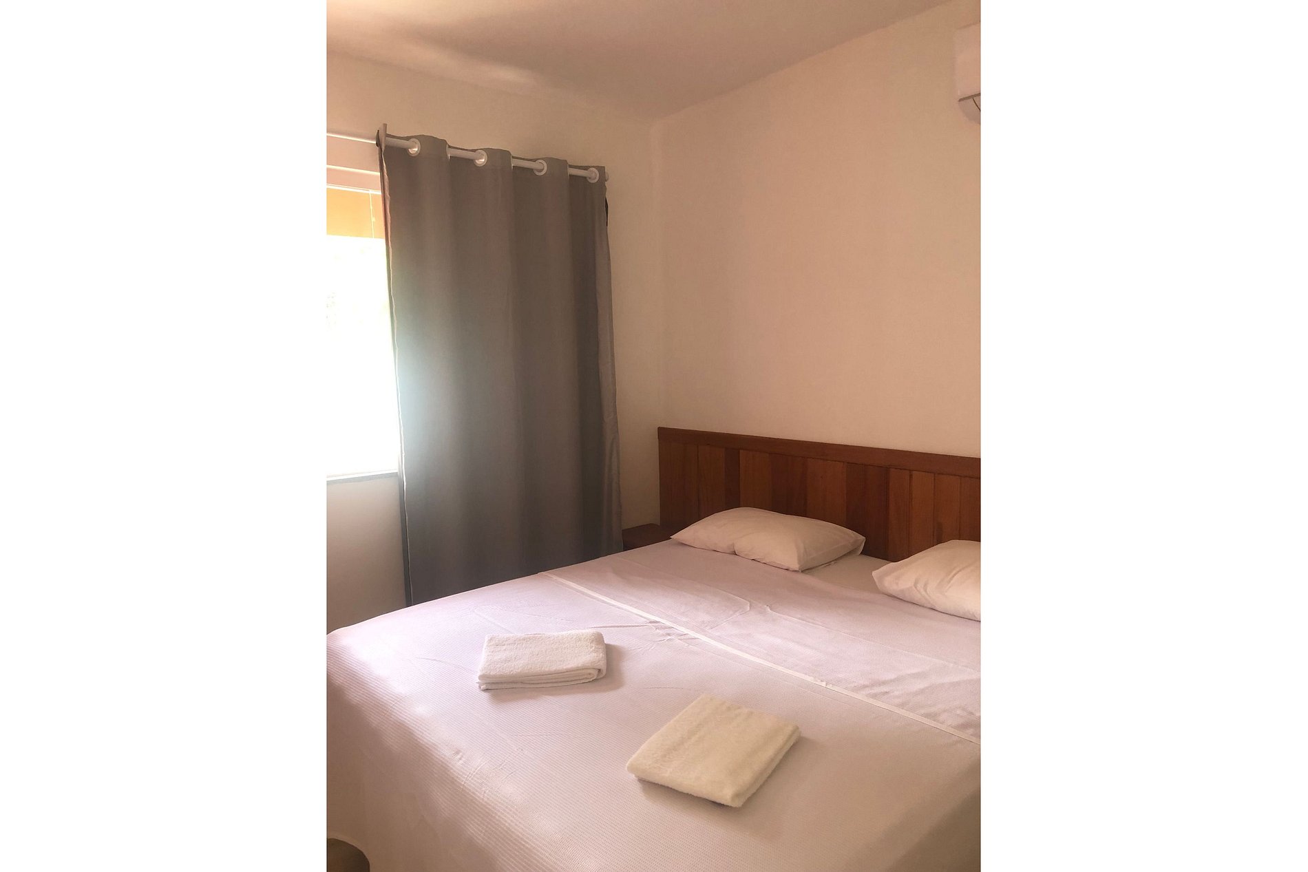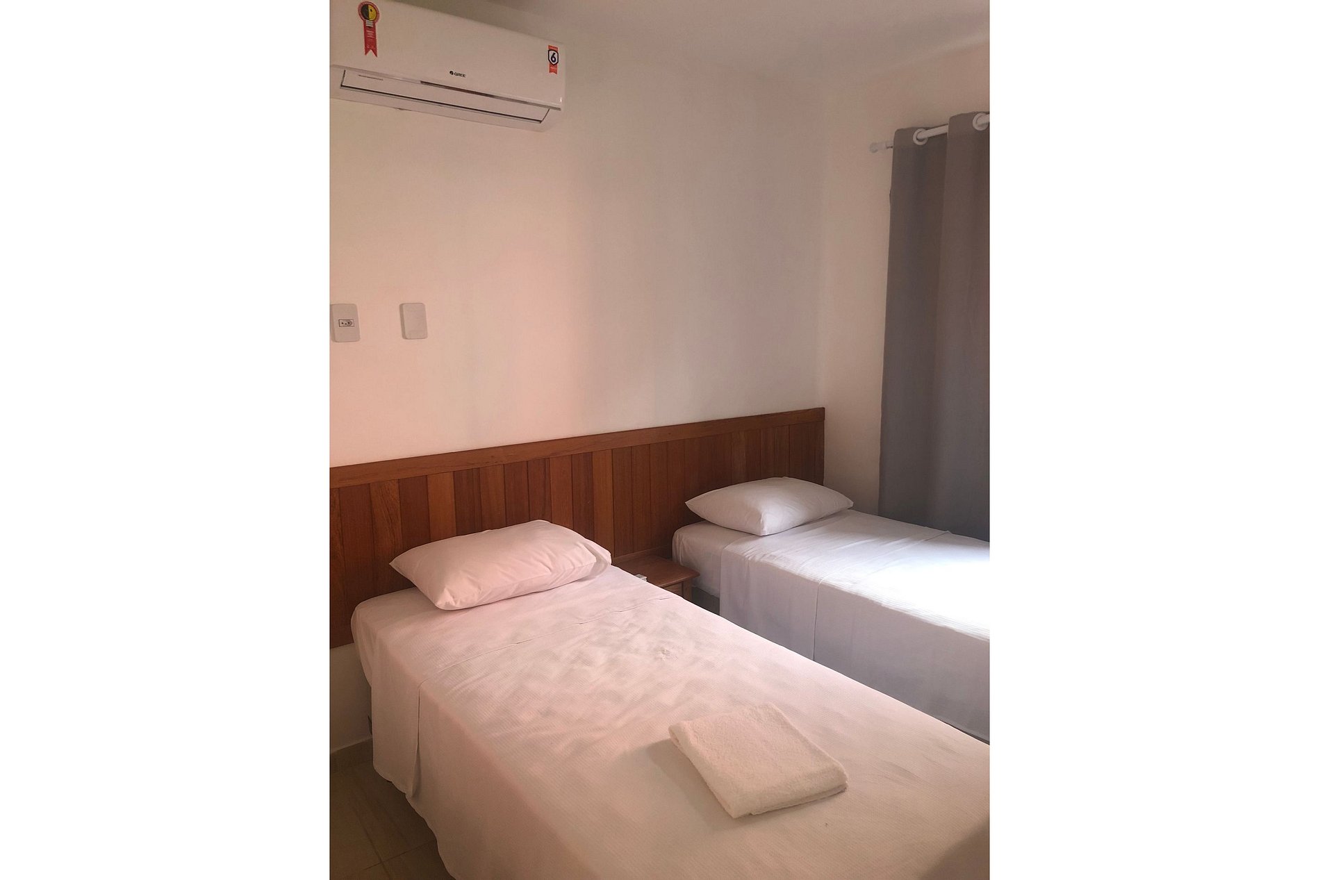 O imóvel está mobiliado com total infraestrutura, quartos com ar-condicionado, armários, e enxoval completo com lençóis, travesseiros e toalhas.